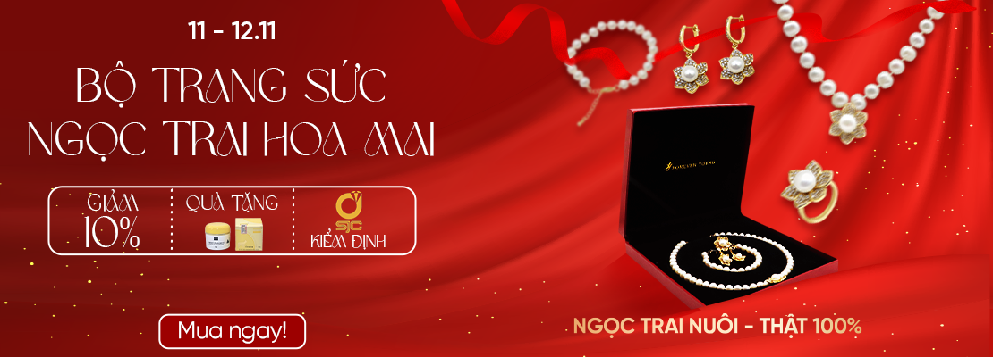 Bộ trang sức ngọc trai thật Hoa Mai (vòng cổ, nhẫn, hoa tai, vòng tay)