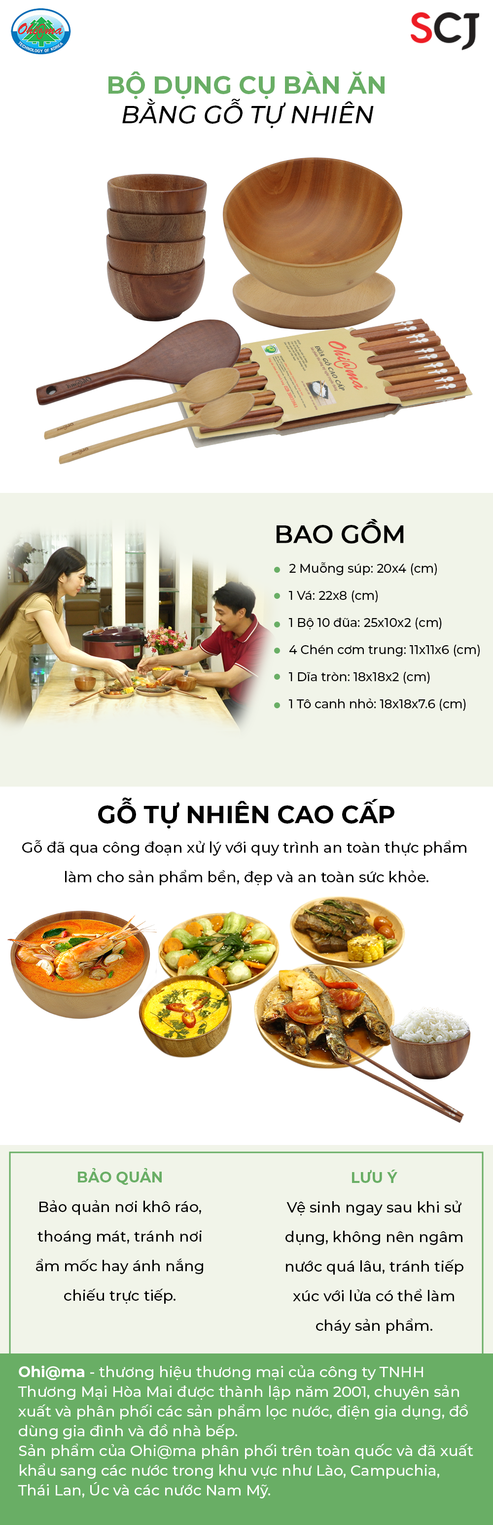 RC- Ohiama-Bộ bàn ăn bằng gỗ (gồm: 4 chén cơm, 1 tô canh, 1 dĩa + 1 vá +2 muỗng súp + 1 bộ đũa gỗ 10 đôi)