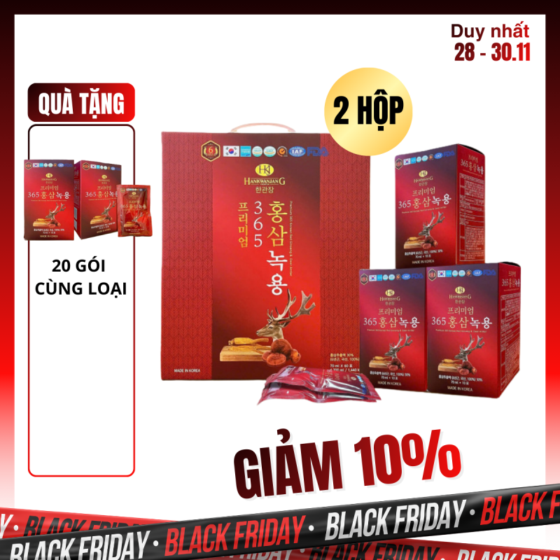 Combo 2 Hộp TPBVSK Premium 365 Korean red Gingseng & Deer Antler (70ml x 60 gói/hộp)