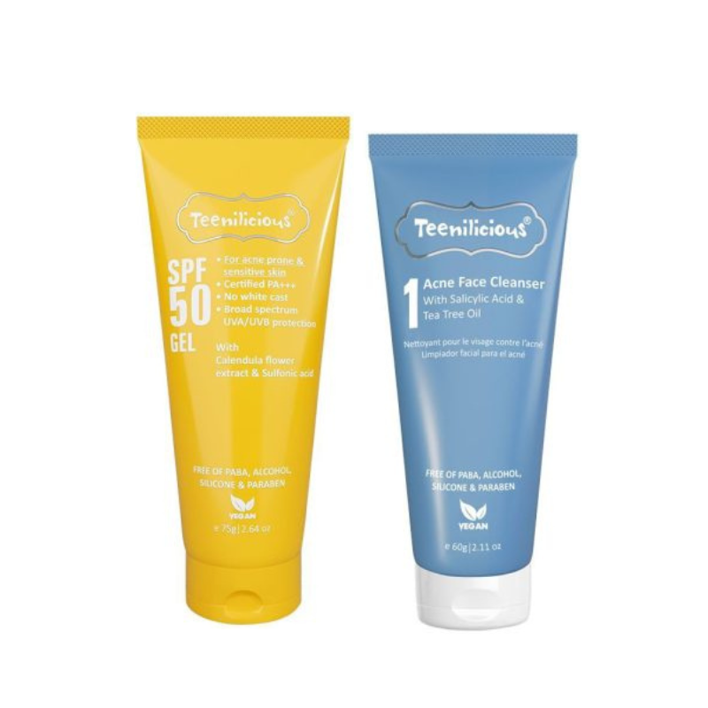 REC- PK - Teenilicious - 01 Gel chống nắng Teenilicious 75g SPF 50/ Teenilicious SPF 50 Gel 75g + 01 Sữa rửa mặt trị mụn Teenilicious 60g / Teenicilious face acne cleanser 60g tặng 05 sữa dưỡng thể lấp lánh Teenilicious Body Lotion Gold 15ml