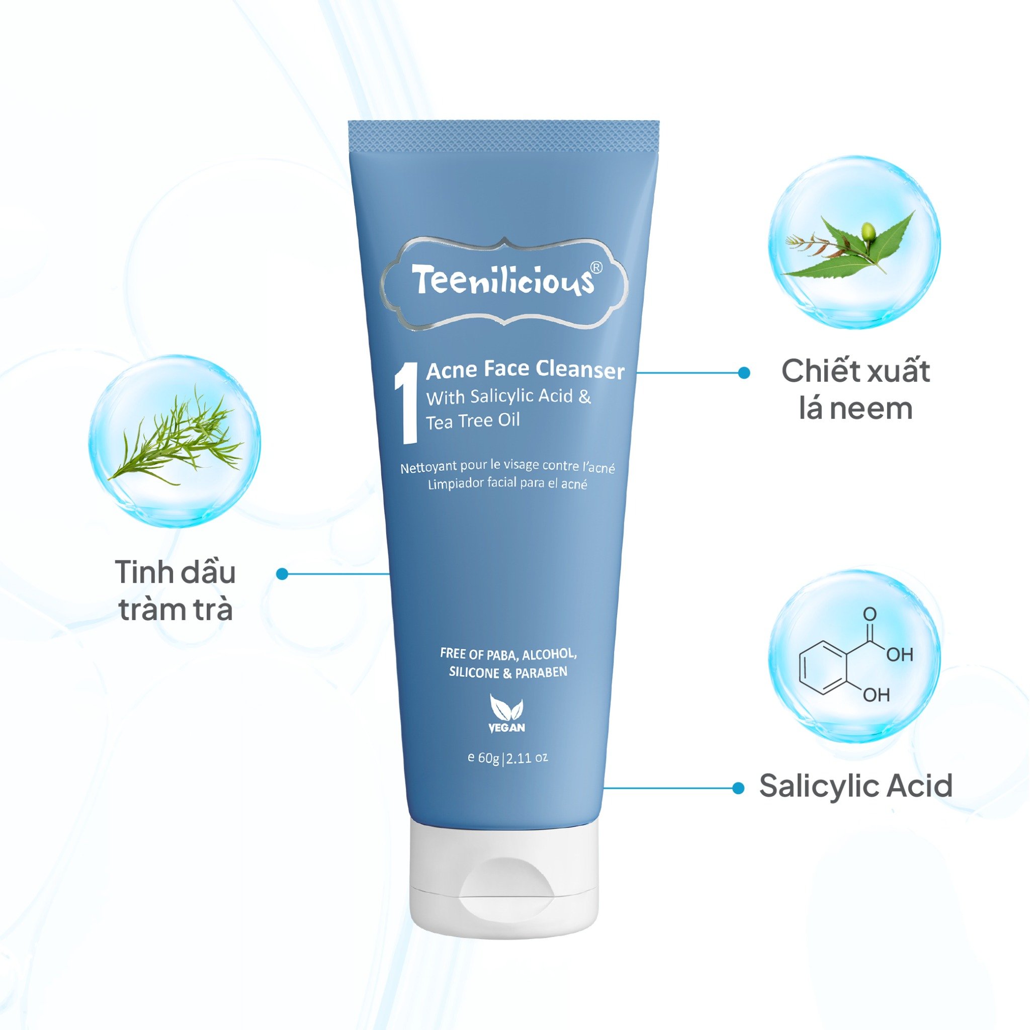 - 01 Sữa rửa mặt trị mụn Teenilicious 60g / Teenicilious face acne cleanser 60g
