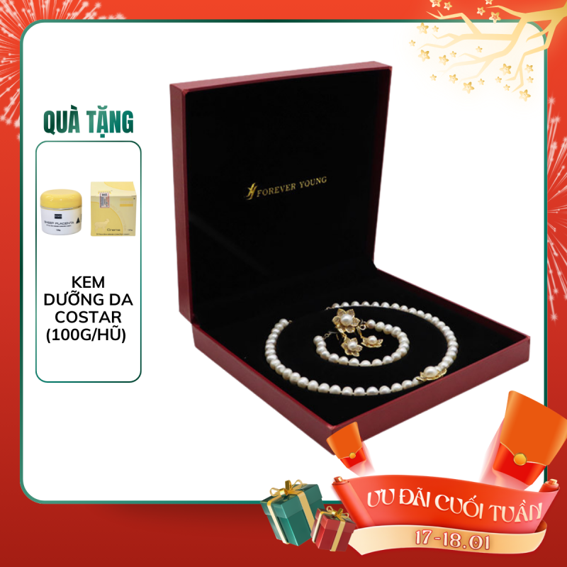 RC - Forever Young - Bộ trang sức ngọc trai thật Hoa Mai (vòng cổ, nhẫn, hoa tai, vòng tay) tặng 1 hủ kem nhau thai cừu 100g