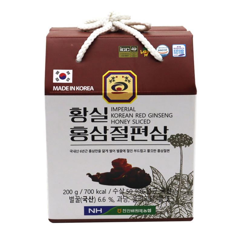 Hồng sâm thái lát tẩm mật ong là sự kết hợp hoàn hảo giữa nhân sâm đỏ 6 năm tuổi và mật ong rừng tinh khiết Hàn Quốc. Hộp 200 gram nhỏ gọn sang trọng cao cấp lịch sự giá cả phải chăng. Ăn ngon về rất dễ ăn. Sản phẩm có tác dụng hỗ trợ nâng cao sức khỏe thể chất, đặc biệt còn làm giảm, ức chế, ngăn chặn các tế bào ung thư, giảm quá trình lão hóa và phòng chống một số bệnh tật của cơ thể…