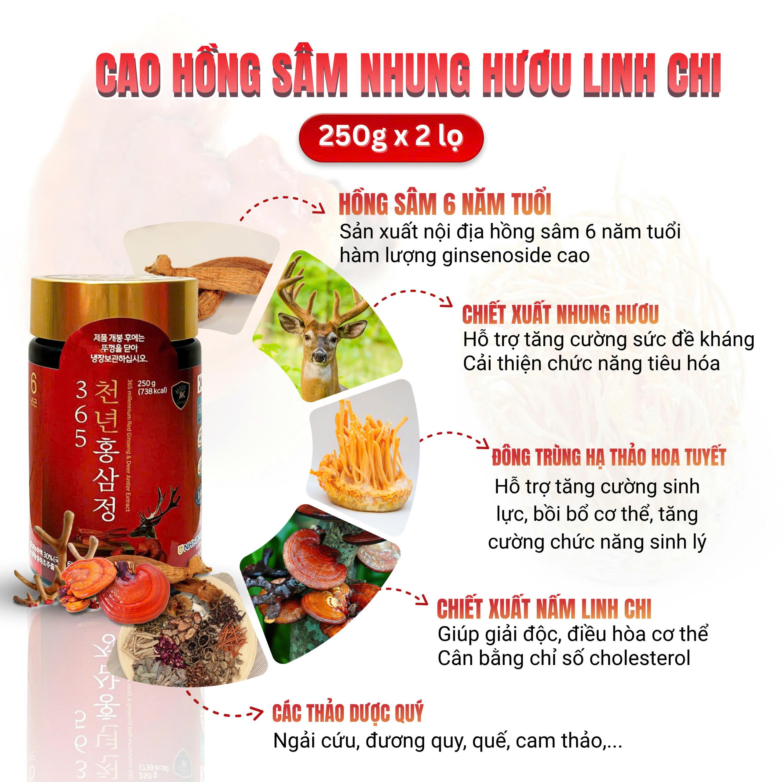 REC_HOASAM_2 hộp Cao hồng sâm nhung hươu Hàn Quốc 365 - 365 Millennium Red Ginseng & Deer Antler Extract ( 250g/lọ x 2 lọ/hộp )