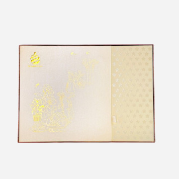 Khoác lên mình sắc kem trang nhã, bộ quà "An Nhiên 01" được thiết kế tinh xảo trên nền giấy mỹ thuật cán vân nhẹ, nổi bật với các chi tiết dập nổi 3D và ép kim chiết quang tinh xảo, mang đến một vẻ ngoài ấm áp và sang trọng.