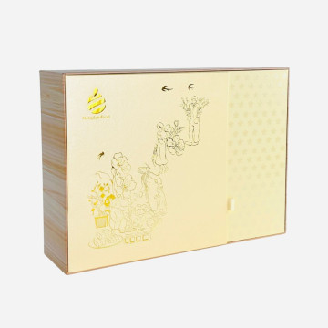 - Hộp Vân gỗ nắp mở 7/3. Dùng kỹ thuật ép kim tinh xảo trên bề mặt giấy mỹ thuật cao cấp đi - kèm với hiệu ứng chiết quang hoa mai