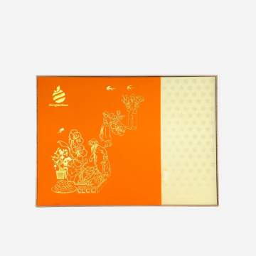 Với thiết kế gam màu cam nổi bật, bộ quà "Đại Phát 01" nổi bật với các chi tiết dập nổi 3D và ép kim vàng kèm họa tiết chiết quang tinh xảo, mang đến một vẻ ngoài sang trọng và đẳng cấp.