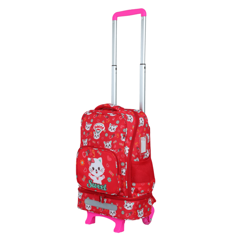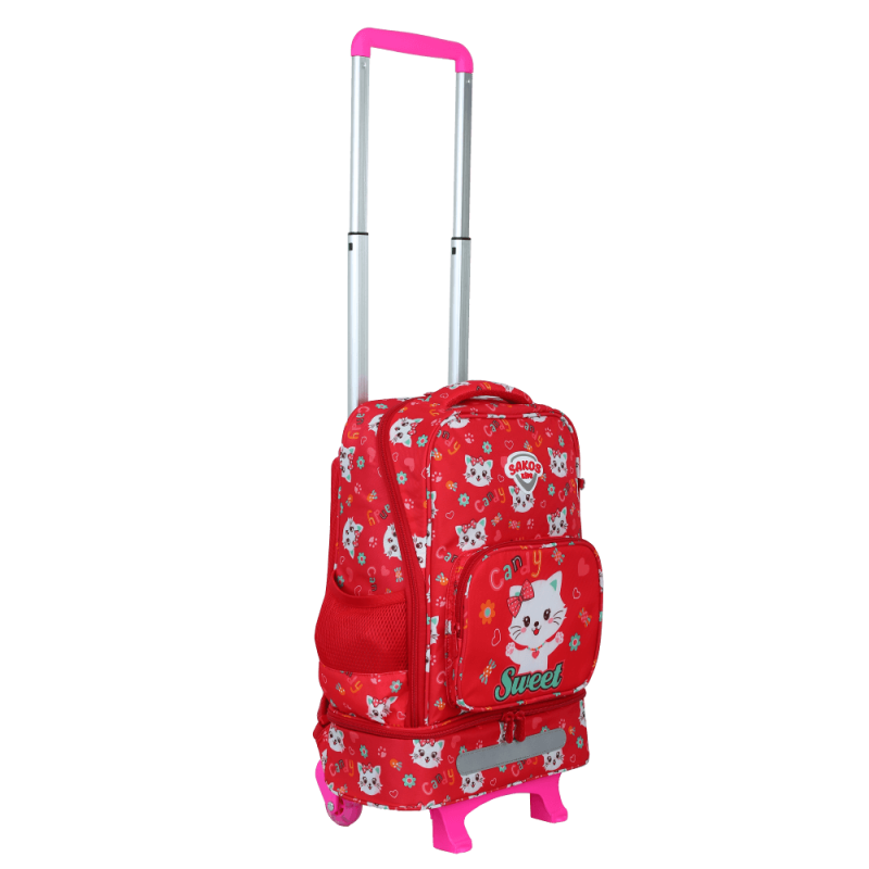 Sản phẩm có cần kéo hợp kim nhôm và hai bánh xe cao cấp giúp cải thiện đáng kể trở ngại về trọng lượng tập sách của bé, dễ dàng di chuyển trên mọi địa hình.