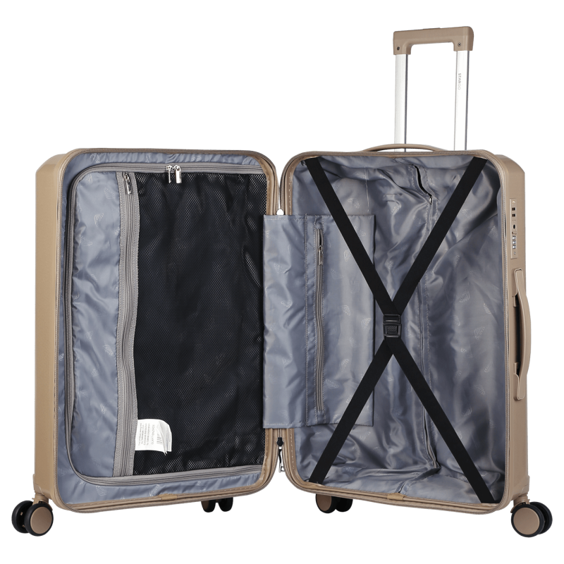 Vali Stargo Corius đáp ứng kích thước tiêu chuẩn của các hãng hàng không quốc tế. Nội thất sang trọng với ngăn chính siêu rộng rãi, giúp bạn dễ dàng đựng và sắp xếp hành lý một cách tiện lợi kết hợp vách ngăn chống đổ hành lý, đai chữ X co giãn.