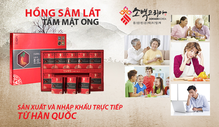 Hồng sâm lát tẩm mật ong Sobaek được chế biến từ hồng sâm 6 năm tuổi gieo trồng và sản xuất trực tiếp tại Hàn Quốc. Hồng sâm 6 năm tuổi được ngâm chung với mật ong Yecheon trong 72 giờ theo phương pháp truyền thống riêng, tạo ra thành phẩm có hương vị đặc trưng và dễ chịu, thích hợp với đa số người dùng. Sản phẩm được tuyển chọn kỹ lưỡng và sản xuất dưới hệ thống quản lý an toàn vệ sinh nghiêm ngặt theo tiêu chuẩn của GMP.