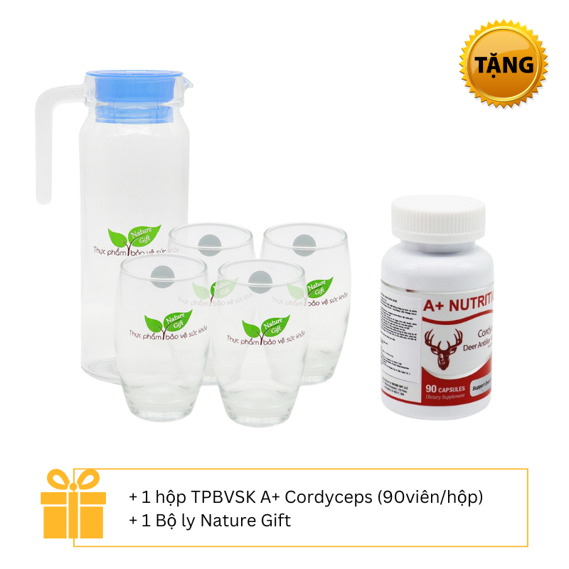 REC_ Nature Gift_ Combo 3 hộp TPBVSK A+ Cordyceps viên đông trùng hạ thảo nhung hươu (90v/ hộp) + 1 hộp cùng loại + 1 Bộ ly Nature Gift
