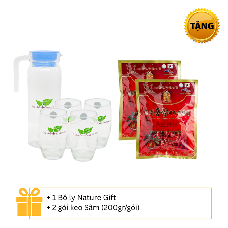 REC_ Nature Gift_ Combo 4 hộp TPBVSK Wellness Nutrition (90 viên/hộp) + 1 Bộ ly Nature Gift + 2 gói kẹo Sâm