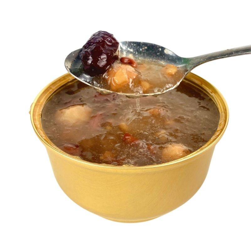 - Nguyên liệu tự nhiên: Yến, táo đỏ, hạt sen, kỷ tử và long nhãn (Yến 25g, Hạt sen 30g, Đậu phộng 30g, Long nhãn 30g, Đậu đỏ 20g, Đậu xanh 10g, Kỷ tử 5g, Đường phèn, Nước tinh khiết).