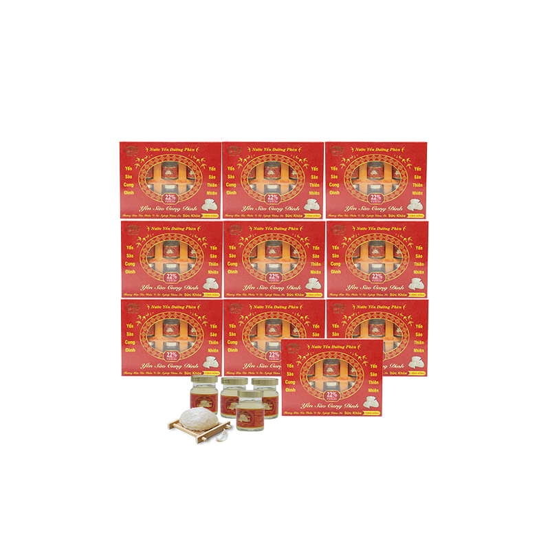 Rec- Cung Đình_10 hộp yến sào đường phèn 22% + 2 hộp nước yến sào đường phèn 18% tặng 10 gói Hồng sâm nước