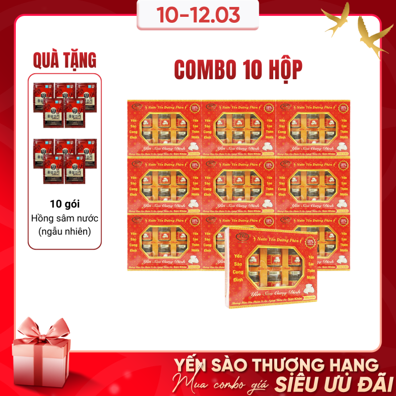 RC- CungĐình-10 hộp yến sào đường phèn18% + 10 gói Hồng sâm nước (ngẫu nhiên)